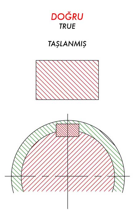 Auf dem obigen technischen Zeichnen wird dargestellt, wie das richtig gesçhliffene Material in seinen Steckplatz hne Hohlraum gesteckt wird.